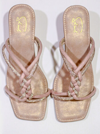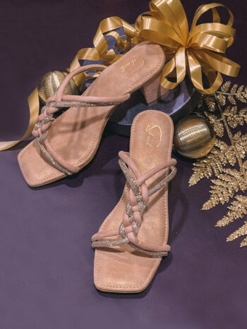 The Celestial Bubble feature a stunning blend of pink and purple hues, creating a dreamy, gradient effect across the footwear. The three straps on the shoes are designed in a wavy pattern, adding a sense of movement and elegance. These straps are heavily embroidered with intricate patterns, giving the shoes a luxurious, textured look. The short heel ensures comfort and stability, making these heels ideal for those who want a stylish yet practical option. The combination of the soft colours and delicate embroidery makes these heels feel like wearable pieces of art, perfect for any occasion that calls for a touch of glamour and comfort.