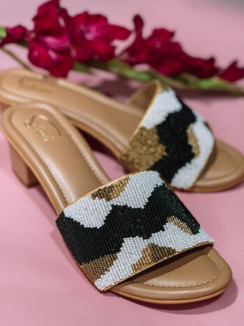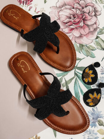The Crystal Cascade Noir exudes refined elegance with a contemporary edge. Featuring a modest heel for both comfort and sophistication, the design is elevated by an upper strap intricately adorned with beaded detailing, adding texture and depth. Complementing this is a slender rhinestone strap that introduces a subtle yet striking touch of sparkle. This harmonious combination of rich embellishments and sleek design makes the shoe an ideal choice for evening events, offering a sophisticated statement piece with a touch of understated glamour.