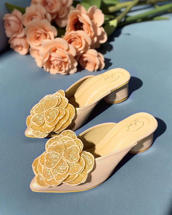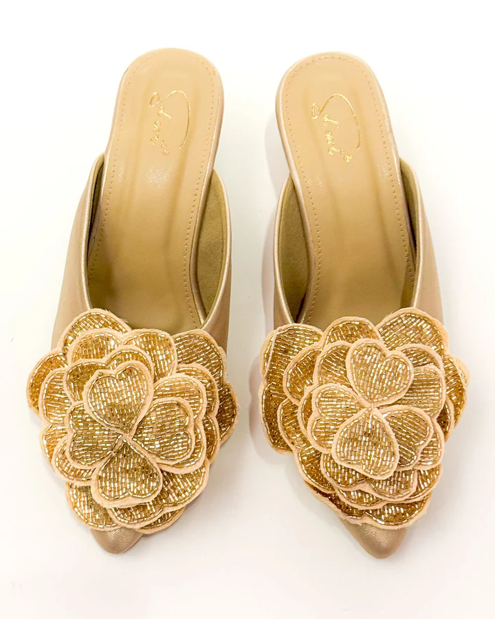 When minimal meets statement, the Rosette Gold Heels are where the magic happens. With a sleek golden base and a bold embroidered rosette blooming at the front, these heels bring effortless glam with just the right touch of drama. Perfect for wedding soirées, festive nights, or any moment that calls for a little golden-hour glow.